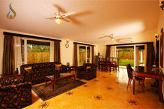 SADAN ('Home') 自宅のようにくつろげるよう設計された、宿泊棟。全部屋にヨガや日光浴を行えるような広々とした庭があります。2ベッドルームのコテージには、リビングルーム、ダイニングルームがあり、伝統的なインテリアが施されています。バスタブとシャワーが分かれた広大な浴室では、必要時、トリートメントを受けることができます。